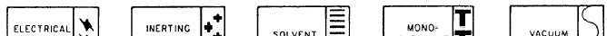 known ordinarily as flammables or com-bustibles. Toxic and poisonous materials (TOXIC). A line identified by the word TOXIC contains materials that are extremely hazardous to life or health.Anesthetics and harmful materials (AAHM). All materials productive of anesthetic vapors and all liquid chemicals and compounds hazardous to life and property, but not normally productive of dangerous quantities of fumes, or vapors, are in this category. Physically dangerous materials (PHDAN). A line that carries material that is not dangerous within itself, but that is asphyxiating in confined areas or is generally handled in a dangerous physical state of pressure or temperature, is identified by the marking |