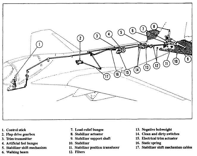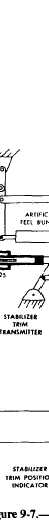 Pilot signals are conveyed through bell cranks and pushrods and a trim mechanism to the input linkage of the stabilizer actuator. A trim switch on the control stick grip provides a means of setting stabilizer trim. Stabilizer trim is displayed by the stabilizer trim indicator located on the pilots lower instrument panel. See figure 9-7.