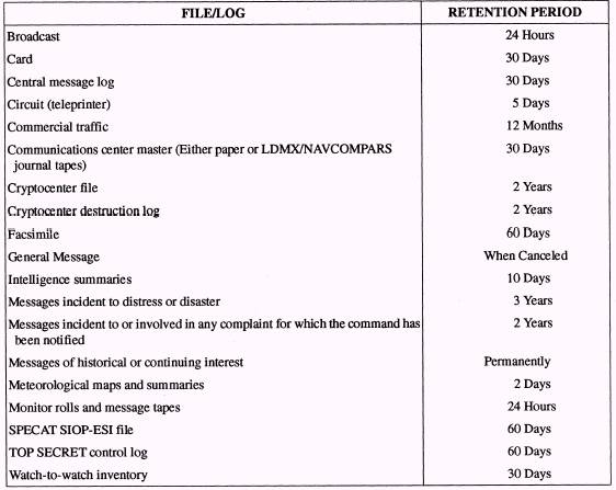 Figure 2-10.-Example of a message filler. also be printed on the lower right-hand corner. This aids personnel in easily locating messages in the files. When a message is removed from a file, it is important that it be refiled as soon as possible. The importance of maintaining well-kept files and of moderating among the various watch sections cannot be overemphasized. Maintaining accurate files and records and observing proper procedures contribute to an efficient shipboard or shore communications organization. You should be aware that different ships and stations may do basic procedures in slightly different ways. All commands, however, must conform to the requirements contained in communications operating instructions and publications. RETENTION OF FILES Communication logs and files are retained by a communications center for a specified time period, as shown in table 2-1. After the time period indicated, the logs and files should be destroyed either by burning or shredding. Because of the volume of message traffic processed, logs and files can take up significant space in the message center; therefore, they should be destroyed in a timely manner.