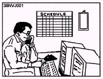 Schedulers and production control coordinators are responsible for coordinating the work efforts of many people. They prepare, distribute, and maintain production schedules for their AIS facility or data center. They analyze job requirements (old and new) to determine the impact each job has on production resources. They also inform the LPO or division chief when scheduling requirements will exceed computer system resources. In short, schedulers act as coordinators from the time a request is received until a job is successfully completed. The scheduler is responsible for keeping the AIS facility's assembly line running as smoothly and efflciently as possible. Schedulers ensure that jobs are scheduled and entered into the production job stream at the proper time. They also ensure that all necessary resources are available to maintain a constant workflow throughout the AIS facility. PEOPLE, PLACES, and THINGS are the important factors of a scheduler's job. The first factor is PEOPLE. You must learn to deal with various personalities. The second factor is PLACES. You have to learn what goes on in other fictional work areas. The third factor is THINGS. You have to cope with run times, deadlines, computer hardware and software malfunctions, problems with production programs, and TIME itself (that 24-hour period in which you are to schedule as much production work as possible). |