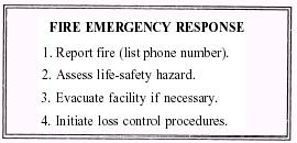 COOP BACKUP PLANNING The risk analysis should identify those situations in which backup operations will probably be needed to avoid costly delays in accomplishing the command mission. The next step is to develop plans for backup operations, which are economically, technically, and operationally sound. Details will depend on circumstances at the AIS facility, but some general guidance and suggestions can be helpful in considering the alternatives. Backup operations may take place onsite when there is only a partial loss of capability. However, they may require one or more offsite locations when there is major damage or destruction. The backup procedures may replicate normal operation or be quite different. When considering backup, AIS management will often find that an exact replica of the onsite AIS system is not available for backup or the time available per day is less than the amount needed to complete all assigned tasks. From this, you might conclude that backup is impossible. On the contrary, a number of things can be done to make backup resources available. The following are examples: Postpone the less urgent tasks. Tabulate the AIS tasks in descending order of urgency as identified by the risk analysis. Having estimated the time to return to normal following a disruptive event, AIS management can quickly see which tasks can be set aside. These include such things as program development, long cycle (monthly, quarterly, or annual) processing, and long-range planning. As long as adequate catch-up time is available after the return to normal, there should be a number of tasks that can be safely postponed. FIRE EMERGENCY RESPONSE 1. Report fire (list phone number). 2. Assess life-safety hazard. 3. Evacuate facility if necessary. 4. Initiate loss control procedures.