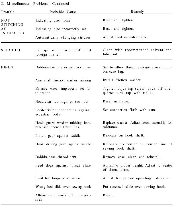 The 31-15 sewing machine has a stitch range of 7 to 32 SPI, a clearance of five-sixteenths of an inch under the presser foot, and uses a dropfeeding action. The major components of the Singer Sewing Machine 31-15 are shown in figure 4-13.