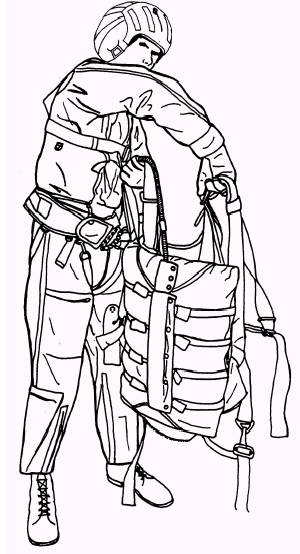 Figure 5-4.\Aircrewman slinging parachute onto back.