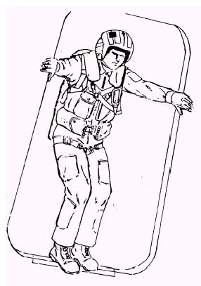 Figure 5-11.\Aircrewman gripping rip cord handle.