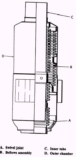 COMMON AIR-CONDITIONING COMPONENTS Some components and hardware are com-mon to all ACSs. Bleed-air ducting is manu-factured from stainless steel and can withstand pressures up to 450 psi and temperatures up to 800 F (425 C). These ducts are covered with high-temperature insulation (fig. 3-3) to protect aluminum structures and electrical lines near the ducting. Bellows assemblies are manufactured for two functions. The tolerance compensator (fig. 3-4) can be adjusted in length and allows for easier removal and replacement of the bleed- air duct. The thermal compensator (fig. 3-5) allows for thermal expansion throughout the bleed-air ducting. To support and brace the ducting, flexible mounting brackets are used (fig. 3-6). The use of these and other types of support brackets will vary with location and type of duct used. Air-conditioning distribution lines are manufactured from aluminum alloy and are subjected to relatively low pressures and temperatures.