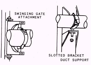 Figure 3-6.- Flexible mounting brackets. A variety of clamping devices are used in connecting aircraft environmental control system ducting sections to each other or to various components. Whenever lines, com-ponents, or ducting are disconnected or re-moved for any reason, install plugs, caps, or coverings on the openings to prevent the entry of foreign materials. Tag the various parts to ensure correct reinstallation. Care should be exercised during handling and installa-tion to ensure that flanges are not scratched, distorted, or deformed. Flange surfaces should be free of dirt, grease, and corrosion. The protective flange caps should be left on the ducting until the installation progresses to the point where removal is necessary to continue with the installation. In most cases it is mandatory to discard and replace seals and gaskets. Ensure that seals and gaskets are properly seated and that mating and alignment of flanges are fitted so that excessive torque is not required to close the joint and impose structural loads on the clamping device. Adjacent support clamps and brackets should remain loose until installation of the coupling has been completed. Marman type clamps commonly used in ducting systems should be tightened to the torque value indicated on the coupling. Tighten all couplings in the manner and to the torque value as specified on the clamp or in the applicable MIM. Some of the most commonly used plain band couplings (flexible line connectors) are illustrated in figure 3-7. When installing a hose between two