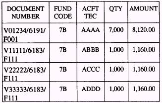 TRANSFERS BETWEEN SHIPS UNDER THE SAME TYCOM.- Transfers of DBOF (formerly NSF) type material between the same TYCOM is nonchargeable. The material transfers will be included in the B summary of the transferring ship or activity. This also covers transfers of TYCOM centrally procured material. This procedure does not include subsistence, ship's store stock, and resale clothing. TRANSFERS BETWEEN UNITS/FUNC-TIONS FUNDED BY DIFFERENT OPERATING BUDGETS.- Transfers of DBOF (formerly NSF) type material between ships of different TYCOM are chargeable transactions. The value of the material transfers will be included in the A summary of the transferring unit. This procedure does not include subsistence, ship's store stock, and resale clothing. APA MATERIAL TRANSFERS.- The inter-ship transfers of APA material are nonchargeable transactions that are not required to be summarized. However, these transactions are required to be documented and a copy retained in file as proof of transfer. TRANSFER OF PETROLEUM PROD-UCTS.- Fund code UZ is used by SAC 207 activities for requisitioning or purchasing aviation fuels. When the transaction is processed, it will appear in the appropriate Financial Inventory Report (FIR) caption. The value of materials received for stock from other supply officers are processed as FIR caption F4. The receipts from procurement (commercial activities) will be processed as FIR caption A1. The transferring activity will show the transaction in FIR caption P4 (transfer to other supply officer-stock). Transfer of fuels from SAC 207 stock to ship's own use or other ship's propulsion or power generation will be charged to the fleet commander's centrally managed allotment. Transfer of fuels and lubricants from SAC 207 ships for use in ship's vehicles ashore is processed as an issue and charged to the ship's OPTAR. Issues to Aviation Units by Aviation Ships.- Issue of aviation fuels by SAC 207 activities to support squadrons is normally conducted on DD Form 1348 (6-pt). The requisition will cite the squadron's fund code (for example 7B) that will be charged for the fuel issue. The SAC 207 issuing ship will process the transaction on FIR caption J1 (issue with reimbursement-service use). In-flight Refueling by Navy/Marine Corps Tankers.- The in-flight refueling operations are conducted by squadrons while deployed or NOT deployed. When NOT deployed, the material control officer of the transferring squadron is responsible for providing the local in-flight refueling form for the pilot to record the transactions. The form should contain the information needed to effect proper billing and reporting such as the unit identification code (UIC) of the receiving squadron. The custodian of the tanker aircraft is responsible for effecting the billing of all fuel delivered during in-flight refueling. The DD Form 1348 (6-pt) is used for documenting fuel transactions. The serial number of the document to be used for in-flight refueling will be Fill. The complete document number will include the following data: l Unit identification code (UIC) of the receiving squadron preceded by art R or V l Julian date and serial number with the date being the date when the tanker service is performed and serial number Fill l When feasible, include the aircraft bureau number of the aircraft that was refueled When it is necessary for the tanker to dump fuel while performing tanker service, regardless of the justification, the tanker squadron will absorb the cost. The squadron performing the tanker service must settle with the SAC 207 activity about the fuel received in conjunction with financial reporting. The tanker squadron must account for the total fuel received for squadron operations and total dispersed to other aircraft. For example, the total sum of fuel for the period is 10,000 gallons at $1.16 per gallon with the total being $11,600.00. The tanker squadron consumed 7,000 gallons for operations and 1,000 gallons each is dispersed to three other squadrons. It is necessary to prepare four separate DD Form 1348s (6-pt) to effect the settlement. The tanker squadron posts $8,120.00 to the OPTAR and each receiving squadrons posts $1,160.00 to their OPTAR. Table 6-3 lists how the documents are prepared for the transactions. During deployment, the pilot of the tanker squadron is responsible for filling out an in-flight refueling report after completing the mission. The material control officer of the tanker squadron is responsible for providing the local in-flight refueling form to the pilot. The carrier air wing commander is responsible for the