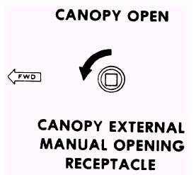 Figure 2-7.-Canopy external manual drive receptacle. is supplied to extinguish the canopy warning light. The switch also interrupts power to the actuator. Canopy Position Switch The canopy position switch is mounted on the right canopy sill in the No. 4 canopy latch retainer. When the plunger switch is depressed by the No. 4 right canopy latch, an electrical signal is supplied to extinguish the canopy warning light. (See fig. 2-8.)