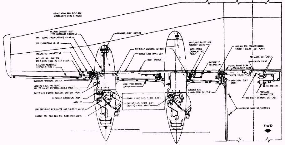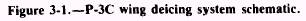 CHAPTER 3 UTILITY SYSTEMS Chapter Objective: Upon completion of this chapter, you will have a working knowledge of the operating principles and components of bleed-air utility systems. The utility systems of an aircraft provide an additional measure of flight safety, pilot comfort and convenience, and contribute to the overall mission capability of the aircraft. BLEED-AIR UTILITY SYSTEMS Learning Objective: Recognize the operating principles and components for systems within the bleed-air utility system. Many aircraft have utility systems that rely on a bleed-air system to function. The P-3C deicing system and the A-6E rain removal system are examples of such systems and are discussed in this chapter. This material will increase your proficiency in troubleshooting and maintaining these and similar systems. DEICE SYSTEMS An anti-icing system is designed to prevent ice from forming on the aircraft. A deicing system is designed to remove ice after it has formed. An aircraft deice system removes ice from propellers and the leading edges of wings and stabilizers. These systems may use electrical heaters, hot air, or a combination of both to remove the ice formation. As an AME, you are primarily concerned with hot air as a method to remove the formation of ice on wings and stabilizers. The P-3C wing deice system is used as an example in this chapter to describe a hot-air system. Description and Components The P-3C wing deice system uses hot compressed bleed air from the engines. The air is ducted from the 14th stage of each engine compressor, as shown in figure 3-1. The bleed air is maintained at a fixed percentage of engine airflow for all altitudes and flight speeds. The hot bleed air is directed and regulated to the leading edge ejector manifold through shutoff valves, modulating valves, thermostats, skin temperature sensors, and overheat warning sensors. SHUTOFF VALVES.- The wing deice system contains several shutoff valves. The fuselage bleed-air shutoff valves, installed in the cross-ship manifold on the right and left wings, isolate the wings from the fuselage duct section. In addition, they maybe used to isolate one wing duct from the other wing duct. Each valve is individually controlled by a guarded toggle switch mounted on the bleed-air section of the ice control protection panel. A bleed-air shutoff valve is also installed in each engine nacelle. These shutoff valves are physically identical. They are of the butterfly-type, and they are actuated by an electric motor. An indicator, located on top of the valve housing, shows the position of the valve-open or closed. This indicator enables you to visually check the operation of the valve while it is still installed in the deice system. MODULATING VALVES.- The P-3C deicing system has three modulating valves installed in each wing. These valves are thermostatically controlled and pneumatically operated. They maintain the constant engine compressor bleedair temperature required for the wing leading edge. When deicing is not required, the valves operate as shutoff valves. The modulating valves, shown in figure 3-2, have pilot solenoid valves that are electrically 3-2
