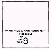 Figure 3-7.-Air-conditioning panel. shutoff valve is a butterfly-type that is 3-7 electrically actuated and operated. The valve is installed in the hot bleed-air duct in the starboard engine compartment. The valve is controlled by the nosewheel well bleed-air switch on the fuel management panel. When the switch is set to the OFF position, the valve is closed by 115-volt ac power from the bleed-air circuit breaker. When the switch is set to the AUTO position, power is routed to the nosewheel well bleed-air relay. When the windshield switch on the air-conditioning panel is moved to the AIR position, or when left main landing gear weight-on-wheels switch is closed, the relay is activated and the valve opens. If electric power is lost, the valve will remain in the last selected position. The valve has a position indicator that can be viewed with the starboard engine-bay door open. RAIN-REMOVAL PRESSURE-REGULATOR SHUTOFF VALVE.- The rain-removal pressure-regulator shutoff valve is a pneumatically operated, solenoid-controlled, 2-inch valve installed in the hot bleed-air duct to the rainremoval nozzle assembly. (See fig. 3-8.) Operation of the valve is controlled by the windshield switch on the air-conditioning control panel. Placing the switch to the AIR position energizes the solenoid of the valve. When the inlet pressure to the valve is between 15 and 50 psi, the valve is fully opened. When it is between 100 and 250 psi, the valve regulates the outlet pressure to the rain-removal nozzle at 753.5 psi. By placing the windshield switch to OFF, it de-energizes the solenoid. This causes the valve to close and shuts off the flow of bleed air to the rain-removal nozzle. In the closed position, air from the upstream side of the valve passes through the control air passages to chamber A and leaks past the pilot valve stem to chamber B. With equal pressure on both sides of the large diaphragm, the pressure on the small diaphragm and the spring force on