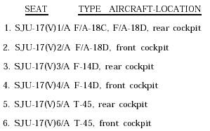 CHAPTER 5 NAVY AIRCREW COMMON EJECTION SEAT (NACES) Chapter Objective: Upon completion of this chapter, you will have a working knowledge of the Navy Aircrew Common Ejection Seat (NACES), including functional description, physical description, component identification, and maintenance concepts. The incorporation of the Navy Aircrew Common Ejection Seat (NACES) in Navy aircraft represents a significant improvement in ejection-seat design that takes advantage of the latest escape system technology. The NACES system gives the aircrew improved chances for escape in all ejection situations, reduced potential for injury, extended preventive maintenance intervals, and a significant reduction in life-cycle costs. This Martin-Baker ejection seat will be fitted to the new Grumman F-14D Tomcat, the McDonnel Douglas/British Aerospace T-45A Goshawk two-seat trainer, and the McDonnel Douglas F/A-18C and D aircraft. The purpose of the common ejection seat is to ease the logistics and maintenance problems on the Navy's inventory of aircraft. The new seat will increase the standardization and reliability of aircraft emergency escape and aircrew and ground crew training. The electronically controlled NACES represents the state-of-the-art in escape system technology, and it has been selected as the future standard of the U.S. Navy. The NACES series was engineered from the outset for future growth potential. The ejection seat is designed for simple reprogramming or modification to ensure that it maintains current technology. As a senior AME, you already have the prerequisite knowledge and experience to understand ejection seat theory. New ideas have been incorporated into the NACES. Now all that is required is your willingness to learn these new ideas so that NACES characteristics become as familiar as previous Martin-Baker ejection seats. SYSTEM DESCRIPTION AND COMPONENTS Learning Objective: Recognize the functional and physical description of the NA-CES and the components within the system. The NACES system uses a flexible configuration to meet the exact requirements of the crew station designer. Although this is a common ejection seat, the designator number for the seat versus aircraft types are different, as shown below.