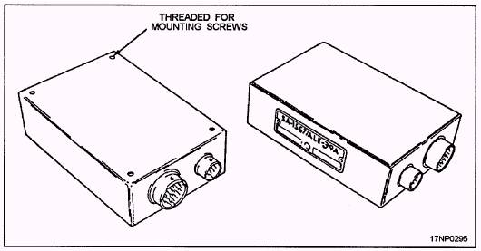 Figure 10-40.-AN/ALE-37A countermeasures chaff dispensing set. The functional theory and a physical description of individual dispensing set components are discussed in the following paragraphs. As you read about the components, look at figure 10-41. It shows their location and identifies them by item number. The chaff dispensing pod is constructed of heat-treated aluminum alloy formed sheet metal, extruded shapes, and machined parts. The pod is designed for quick reloading by using the spare loaded modules with squib boards installed. The pod hardback (item 3) has a rigid surface for mounting the pod to the bomb rack. The nose cone (item 1) houses the intervalometer, interlock switch, and provides aerodynamics to the pod. The tail cone (item 4) is identical to the nose cone, except it has extra markings and a hole for the insertion of a lanyard pin. An electrical connector at the aft end of the pod is used to interface with the aircraft's 28-volt dc power supply for pod operation. Power is routed internally, through the electrical wiring (item 14), from the connector to the intervalometer (item 2).