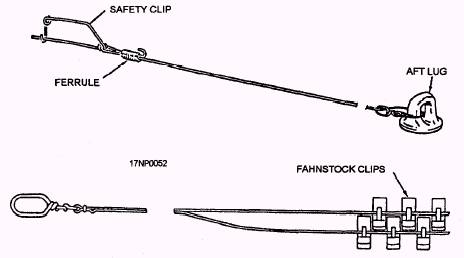 Figure 1-24.-Arming wire assemblies. general-purpose bombs currently being used aboard ships are required to be thermally protected. Thermally protected Mk 80 series bombs can be identified by the words THERMALLY PROTECTED in the identification legend, a bumpy exterior surface, and two yellow bands around the nose. |