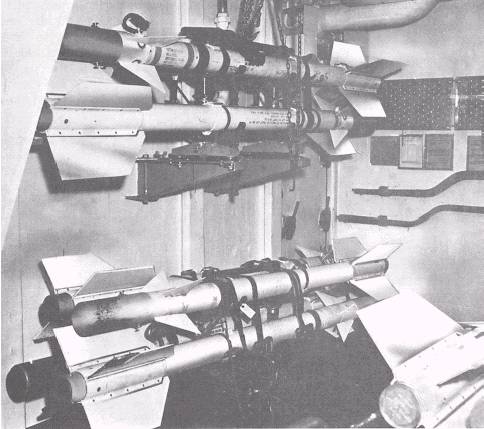 Figure 11-5.-Typical missile ready-service magazine. at outboard locations on aircraft carriers for short-term stowage of aircraft parachute flares. These flares have either been removed from the primary pyrotechnics magazines and prepared for launching or they have been returned intact after a mission. If necessary, these lockers are manually jettisoned. A label is installed on the locker identifying the type of explosives that are stowed within each locker. Where stowage for ammunition is provided by lockers, chests, or racks that are permanently secured to the ship's structure, don't change their location without prior approval of NAVSEASYSCOM. Chemical Magazines Chemical ammunition classified as lethal or incapacitating isn't carried aboard ships unless specifically authorized by NAVSEASYSCOM or higher authority. If authorized, specific stowage instructions are issued by NAVSEASYSCOM, and personnel involved in handling procedures must receive appropriate training. Specific spaces aboard ship may be designated as chemical magazines by NAVSEASYSCOM. The decks and bulkheads of a chemical magazine are coated with an impermeable material, and the magazine contains a provision for sampling its internal atmosphere from an adjacent compartment. Facilities for personnel and gross decontamination are located near the magazine. IMPROVED REARMING RATE PROGRAM Modern naval aircraft carriers incorporate a magazine stowage concept called "modular stowage." The modular stowage concept gives greater versatility in magazine stowage arrangement and minimizes ammunition handling. It makes it easier to stow ammunition, such as bombs and missiles, as fleet issue loads. Also, it isn't necessary to depalletize or decan loads before they are stowed. The incorporation of modular stowage and the addition of larger weapons elevators to service these areas brought about the Improved Rearming Rate Program (IRRP). The IRRP allows major handling time improvements in two areas-rearming and weapons assembly. Stowing ammunition as received on pallets lets handling crews rearm the ship's mission load in less time than the old system. In turn, handling time is minimized during weapons assembly. DESIGNATION OF MAGAZINES Magazines or ammunition spaces afloat are designated with particular reference to the purpose intended. Generally, magazines aboard ship are designated to hold a single type of ammunition. Single-Purpose Magazine Magazines are designated as single-purpose stowage magazines whenever practical. The following are single-purpose magazine designations: powder and rocket motor magazine; hyperbolic rocket engine magazine; fixed ammunition magazine; small arms magazine; missile magazine; warhead locker or magazine; aircraft bomb magazine; projectile and rocket head magazine; fuze magazine; detonator locker; pyrotechnic magazine or locker; ready-service ammunition room, box, rack, or locker; and chemical magazine. Multipurpose Magazine While stowage of a single type of ammunition in an individual magazine is desirable, it isn't always possible. NAVSEASYSCOM authorizes certain mixed stowages in magazines that retain a single-purpose designation. Where stowage space is limited and the mission requires carrying various types of ammunition, stowage of more than one type of ammunition in a magazine is an acceptable hazard. Authorization for this type of stowage is at the discretion of the operational commander. AMMUNITION STOWAGE REQUIREMENTS Generally, there are magazines for each type of ammunition stowed aboard ship. Ammunition, explosives, and explosive components are stowed in specifically designated stowage spaces. Ammunition stowage spaces aboard ships are limited, and in certain classes of ships, extremely limited. Therefore, ammunition stowed aboard ship should stay within authorized ammunition allowances. Its important for shipboard ammunition to be stowed so maximum effectiveness is achieved. For these reasons, strict compliance with ammunition stowage by compatibility groupings aboard ship, while desirable and observed when practical, may not be feasible. When mixed stowage is used, make sure that it conforms to the stowage tables listed in Ammunition Afloat, NAVSEA OP 4. Table 11-1 is an example of the permissible mixed stowage of ammunition types in shipboard magazines. The different types of ammunition are listed in the first column of table 11-1. The types of magazines are listed across the top of the table. The type of ammunition is stowed only in those magazines indicated by a black box intersecting the horizontal line for the ammunition item and the vertical line for the type of magazine. |