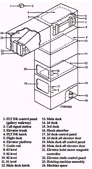 Weapons Elevator Maintenance and Safety The weapons department is responsible for maintaining all weapons elevators aboard aircraft carriers. As an AO, you will perform preventive maintenance and repair elevator systems. The IWHS elevators are located close to the 5,500-pound elevators. Consequently, the same personnel are required to operate, maintain, and troubleshoot both types of elevators, even though they differ significantly in design and level of sophistication. Although the primary responsibility of elevator maintenance rests with the AO, some maintenance procedures require the assistance of personnel within other ratings, such as Machinist Mate (MM) and Electricians Mate (EM). When this requirement exists, it is noted on the PMS card. All electrical power requirements for the weapons handling system come from the ship's service 440-volt, three-phase, 60-hertz power supplied throughout the system. Ship's service power is converted to other ac and dc voltages by either the controllers or control panels to meet system equipment requirements. For the safety of maintenance personnel, the tag-out and tag-in system has been established The steps within this system are standardized throughout the Navy. You should comply with your ship's tag-out procedures to ensure safety. Ship's service sound-powered telephones are located at each operator control station. They are used to supplement weapons handling system control indicators and coordinate operations between various deck levels. An elevator must not be dispatched from one deck to another until communications between the sending operator and receiving operator have been established. In addition to OJT, most commands require that all personnel operating elevators possess a valid operators license. The license should reflect the type(s) of elevator(s) the individual is authorized to operate. For example, an operator may be authorized to operate all elevator systems at any control station, or an individual