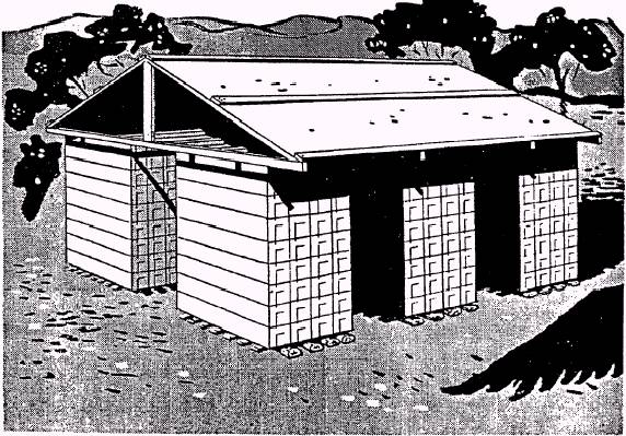 Figure 12-6.-Amnmnition protected by a wooden, roof-type cover.
