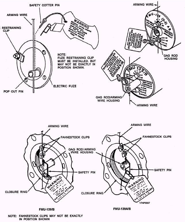Figure 13-6.-Mk 376 and FMU-139 series electric/electronic fuze arming wire installation. |