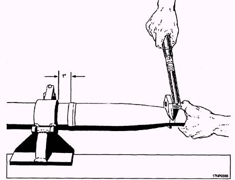 Figure 13-25.-Holding fixture assembly. 13-25 2. Hand tighten warhead to motor. 3. Apply the specified torque to the warhead by using a crowfoot adapter and torque wrench (fig. 13-25). NOTE: Some warheads only require tightening until the warhead seats on the motor 360 degrees. 4. Install fuze hand-tight in the warhead. 5. Verify there is no gap between the fuze and warhead or warhead and motor. 6. Remove assembled rocket from holding fixture. 7. Remove and retain fin protector just before inserting rocket into launcher. 8. Slowly push the rocket into the tube by using rocket loading and release tool (fig. 13-26) until detent snaps into position in detent groove.