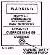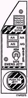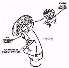 Figure 15-14.-Master arm control panel assembly. Aircraft Controller Grip Assembly The aircraft controller grip assembly (fig. 15-15) contains the A/G weapons release switch (bomb release switch). The switch is spring-loaded to the OFF position. When the switch is pressed, it completes a circuit from the armament computer and provides an input back to the armament computer. The aircraft grip controller assembly also contains an A/A switch and the trigger switch, which is discussed later in this chapter.