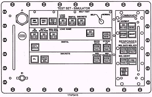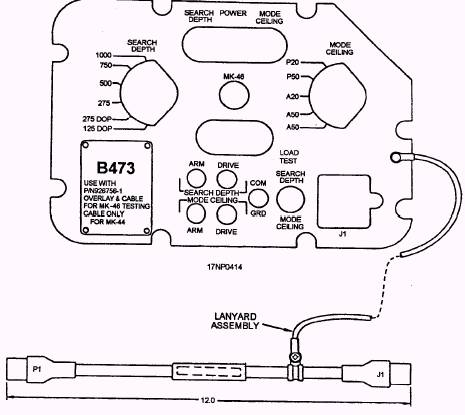 Figure 16-19.-B473 test set overlay. perform circuit continuity tests on Mk 46 torpedo preset circuits. Both the B203 and B473 test sets are used with the P-3 aircraft. TS-3519D/DSM TEST SET SIMULATOR The TS-3519D/DSM test set simulator (fig. 16-20) is a manually programmable digital test set. It is used