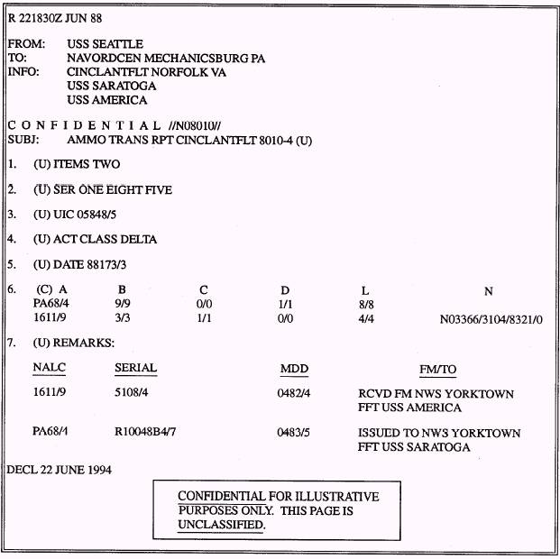 Also, this particular ATR is classified CONFIDENTIAL. Notice that the subject line and paragraphs 1, 2, 3, 4, 5, and 7 include a (U) and paragraph 6 includes a (C). When an ATR is classified, each paragraph must be identified as to the classification of its contents. This is indicated by a (U) for unclassified, or(C) for Confidential.