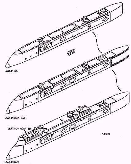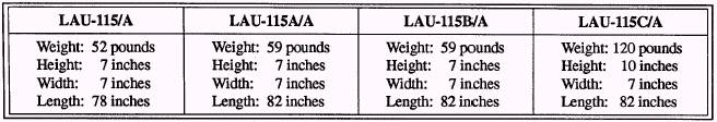 Figure 3-22.-LAU-115A/A, LAU-115B/A, and LAU-115C/A guided missile launchers. Table 3.3.-LAU-115 Technical Characteristics