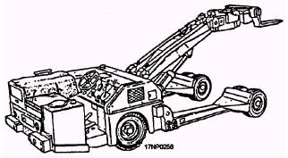 Figure 9-62.-A/S 32K-1A/1B/1C SATS weapon loader. directly off the ground, and lights for night loading operations. Each A/S 32K-1A/1B/1C SATS weapon loader has an SWL of 4,500 pounds. It is used to load externally carried munitions, weapons, and stores onto an aircraft. Each SATS weapon loader is used with a variety of adapters and cradles. |