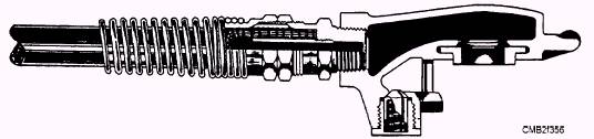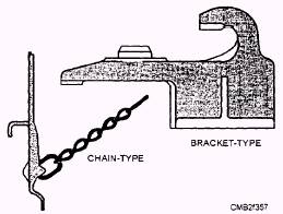 Air hoses and fittings (fig. 7-55) provide a means of making a flexible air connection between points on a vehicle which change their position in relation to each other or between two vehicles. All air brake assemblies used to connect the air brake systems from one vehicle to another are equipped with detachable fittings and spring guards. When installing a hose assembly where both ends are permanently connected, use the air hose connector assembly at each end as the union to permit tightening the hose connectors in place. Loosen the nut on one of the connector assemblies and then turn the hose in the loose connector to avoid kinking the hose. To prevent dirt and moisture from entering unused air lines, use dummy couplings (fig. 7-56). The two types of dummy couplings are as follows: Bracket-type couplings are mounted to the vehicle for storage of unused hose. Chain-type couplings are attached to the vehicle by a chain and placed in couplings mounted on the vehicle. SYSTEM SWITCHES AND INDICATORS Low-Pressure Warning Indicator