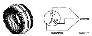 The delta-type stator (fig. 2-26) has the stator wires connected end-to-end. With no neutral junction, two circuit paths are formed between the diodes. A delta-type stator is used in high output alternators. |