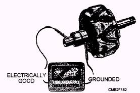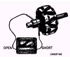 To determine what component( s) has caused the problem, you will be required to disassemble and test the alternator. ROTOR TESTING.- To test the rotor for grounds, shorts, and opens, perform the following: To check for grounds, connect a test lamp or ohmmeter from one of the slip rings to the rotor shaft (fig. 2-29). A low ohmmeter reading or the