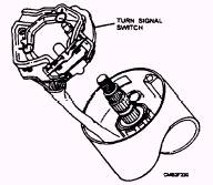Vehicles that operate on any public road must be equipped with turn signals. These signals indicate a left or right turn by providing a flashing light signal at the rear and front of the vehicle. The turn-signal switch is located on the steering column (fig. 2-68). It is designed to shut off automatically after the turn is completed by the action of the canceling cam.
