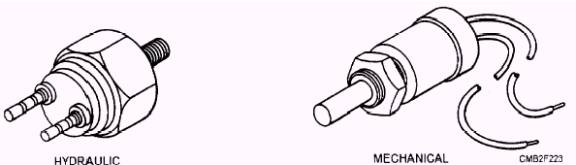 Figure 2-71.- Brake light switches. A circuit breaker performs the same function as a fuse. It disconnects the power source from the circuit when current becomes too high. The circuit breaker will remain open until the trouble is corrected. Once the trouble is corrected, a circuit breaker will automatically reset itself when current returns to normal levels. The fuses and circuit breakers can usually be found behind the instrument panel on a fuse block (fig. 2-72).