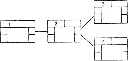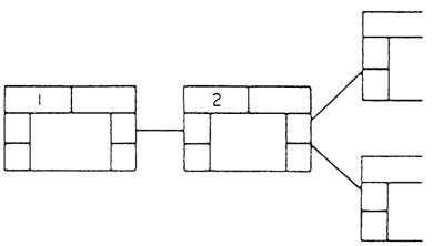 Figure 9-24.-Dependent activity. Calculating the free float consists of subtracting the earliest start (ES) date from the latest start (LS) date, or: Free float = LS - ES Figure 9-22 is an example of an activity-on-node precedence diagraming method (PDM) network with total and free float calculations completed. INDEPENDENT ACTIVITY.- An independent activity is an activity that is not dependent upon another activity to start. Activity 1, diagramed in figure 9-23, is an example of an independent activity. DEPENDENT ACTIVITY.- A dependent activity is an activity that is dependent upon one or more preceding activities being completed before it can start. The relationship in figure 9-24 states that the start of Activity 2 is dependent upon the finish of Activity 1. Frequently, an activity cannot start until two or more activities have been completed. This appears in the diagram as a merge or junction. In figure 9-25, Activities 3 and 4 must be completed before the start of Activity 5. Earlier we mentioned a "burst" of activities. A burst is similar to a merge. A burst exists when two or more activities cannot be started until a third activity is completed. In figure 9-24, when Activity 2 is finished, Activities 3 and 4 may start. |
