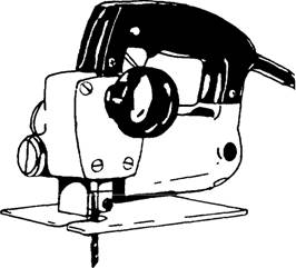 Figure 3-18.-Saber saw. and covers the blade to the depth of the teeth when you lift the saw off the work. Wear goggles or face shields while using the saw and while cleaning up debris afterward. Grasp the saw with both hands and hold it firmly against the work. Take care to prevent the saw from breaking away from the work and thereby causing injury. Inspect the blade at frequent intervals and always after it has locked, pinched, or burned the work. Disconnect the saw from the power source before performing this inspection. Inspect daily the electric cords that you use for cuts or breaks. Before cutting boards, make sure the cord is not in the way of the blade. Saber Saw The saber saw (figure 3-18) is a power-driven jigsaw that cuts smooth and decorative curves in wood and light metal. Most saber saws are light-duty machines and not designed for extremely fast cutting. There are several different, easily interchangeable blades (figure 3-19) designed to operate in the saber saw. Some blades are designed for cutting wood and some for cutting metal. The best way to learn how to handle this type of tool is to use it. Before trying to do a finished job with the saber saw, clamp down a piece of scrap plywood and draw some curved as well as straight lines to follow. You will develop your own way of