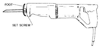 Figure 3-20.-Reciprocating saw. Before operating this saw, be sure you are using a blade that is right for the job. The manufacturer's instruction manual shows the proper saw blade to use for a particular material. The blade must be pushed securely into the opening provided. Rock it slightly to ensure a correct fit, then tighten the setscrew. To start a cut, place the saw blade near the material to be cut. Then, start the motor and move the blade into the material. Keep the cutting pressure constant, but do not overload the saw motor. Never reach underneath the material being cut. Observe the following safety precautions when operating a reciprocating saw: 9 Disconnect the saw when changing blades or making adjustments.
