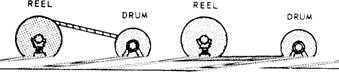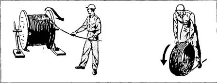Figure 4-9.-Unreeling wire rope (left) and uncoiling wire rope (right).