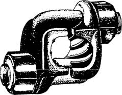 Figure 4-16.-Wire rope clips. Another type of wire rope clip is the twin-base clip (sometimes referred to as the "universal" or "two-clamp") shown in figure 4-17. Since both parts of this clip are shaped to fit the wire rope, correct installation is almost certain. This considerably reduces potential damage to the rope. The twin-base clip also allows for a clean 360 swing with the wrench when the nuts are being tightened. When an eye is made in a wire rope, a metal fitting (called a thimble) is usually placed in the eye, as shown in figure 4-16, to protect the eye against were. Clipped eyes with thimbles hold approximately 80 percent of the wire rope strength. After the eye made with clips has been strained, the nuts on the clips must be retightened. Occasional checks should be made for tightness or damage to the rope caused by the clips.
