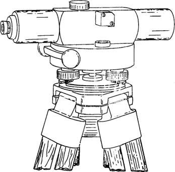 SETTING UP A LEVEL After you select the proper location for the level, your first step is to set up the tripod. This is done by spreading two of the legs a convenient distance apart and then bringing the third leg to a position that will bring the protector cap (which covers the tripod head threads) about level when the tripod stands on all three legs. Then, unscrew the protector cap, which exposes the threaded head, and place it in the carrying case where it will not get lost or dirty. The tripod protective cap should be in place when the tripod is not being used. Lift the instrument out of the carrying case by the footplate-not by the telescope. Set it squarely and gently on the tripod head threads and engage the head nut threads under the footplate by rotating the footplate clockwise. If the threads will not engage