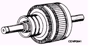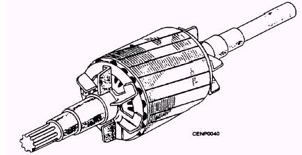 Figure 7-41.- Three-phase wound rotor. rotor (fig. 7-41) has a winding on the core that is connected to three slip rings mounted on the shaft.