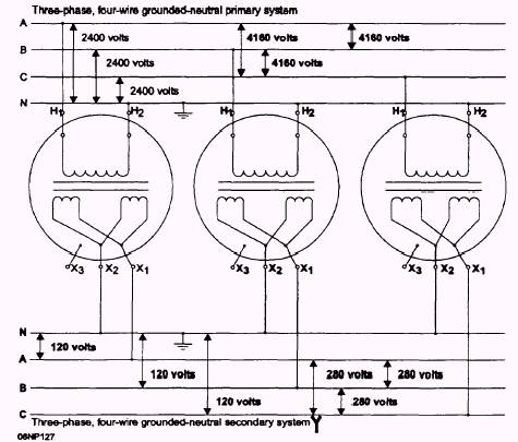 Figure 4-30.- Three-phase wye (Y) primary and secondary system.