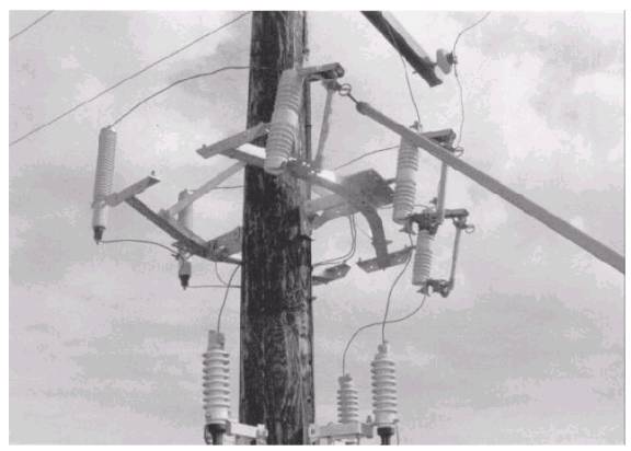Figure 4-33 shows an open types of distribution cutout being closed. Distribution cutouts are used with installations of transformers, capacitors, cable circuits, and sectionalizing points on overhead circuits.