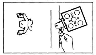 Figure 5-14.- Box mounting on metal stud with spring clip. behind the stud face and locks the box in place. The box can be moved easily up or down on the stud by releasing the spring tension. Boxes can also be attached to metal framing members with sheet metal screws or machine bolts and nuts.