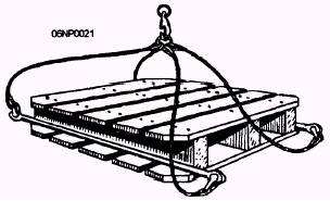 Figure 1-15.- Cargo pallets in combination with slings. operational efficiency are the responsibility of all personnel involved. SIGNALLING CEs are frequently required to act as signalmen for crane or hoist operators and for the positioning of equipment. There are a number of precautions and procedures that should be observed in these operations. Whenever the operator's view is obstructed so that he cannot see the path of travel of any part of the equipment, load, or components, a competent signalman is required to be stationed in such a position that he or she can be easily seen by the operator and where the signalman has a full view of the intended path of travel of the equipment, load, or components, yet where he or she will be clear of the intended path of travel. The signalman should assist the operator by watching the load when it is out of view of the operator and communicating with the operator by the use of prearranged visual signals (app. III) or a suitable communication system. The signalman must be fully qualified by experience with the operation. wear high-visibility gloves. use hand signals only when conditions are such that the signals are clearly visible to the operator. be made responsible for keeping the public and all unauthorized personnel outside the operating radius of the crane or the path of the equipment. direct the load so that it never passes over anyone. When the signalman desires to give the operator any instructions other than those provided by the established signal system, the operator should be instructed to stop all motion FIRST. Hand signals can be used effectively when the distance between the operator and the signalman is not great, but two-way radios should be used when the distance or atmospheric conditions prevent clear visibility. Adequate lighting and signalling arrangements must be available during night work, and the equipment must not be operated when either is inadequate.