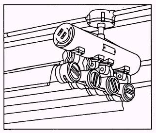 Figure 5-58 shows an explosionproof fluorescent lighting fixture for installation in a paint spray room. In this fixture, the fluorescent tubes are sealed in a larger glass tube. The four-tube seal ends can be seen in the figure. The ballast (explained in NEC(c) Article 410, Part P) is enclosed in the container above the tube seals.
