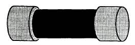Figure 5-63.- Ferrule type of fuse. The other type of fuse you will be dealing with, as a CE, is the cartridge fuse. There are two types: the ferrule and the knife blade. Both types are available with replaceable or nonreplaceable fuse links. Ferrule fuses are available in ampere ratings from 0 through 60. Fuse panels that use the ferrule type of fuse have specially designed fuse clips in which only ferrule types will fit. Fuse diameter and length increase as amperage and voltage increase. Ferrule fuses are used in circuits up to 600 volts. Figure 5-63 shows a typical ferrule type of fuse. Fuse panels that provide distribution for high-capacity circuits use knife-blade fuses for protection. The fuse clips are especially designed to receive knife-blade fuses only. Knife-blade fuses are available in ampere ratings of 61 through 6,000. The maximum voltage rating for knife-blade fuses is 600 volts. Figure 5-64 shows a typical knife-blade fuse. Two factors must be considered when fuses for circuit protection are to be selected. These are the total current flow and the voltage of the circuit in which the fuse is to be installed. Since the purpose of the fuse is to protect the circuit, it must be the weakest point in the circuit. Thus the fuse used should be rated no higher than the lowest rated component to be protected. Before installing a fuse in a panel; check the condition of the