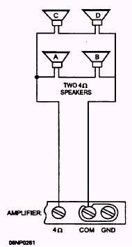 Figure 6-2.- Two speakers connected in series. A and B, then for C and D. Take the results of this and apply the parallel formula 1/Zt=1/Z1+1/Z2 or (Z1*Z2)/(Z1+Z2) to obtain the final matching impedance.