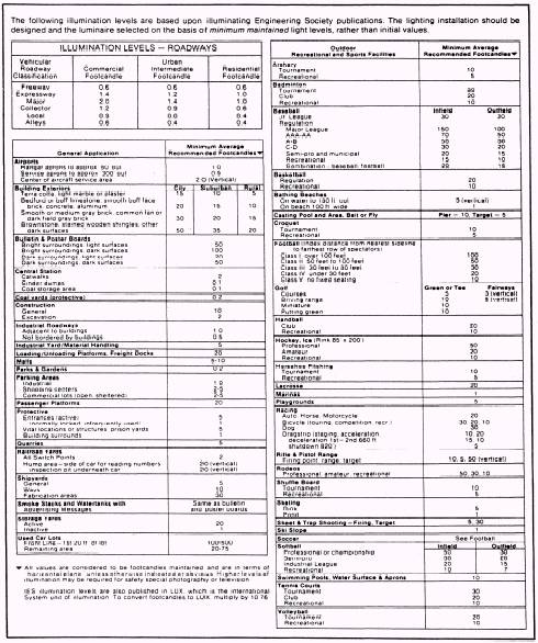 FLOODLIGHTS Streetlighting systems usually give lighting intensity from .01 to 0.5 footcandle; however, this value is too low for any night activity requiring