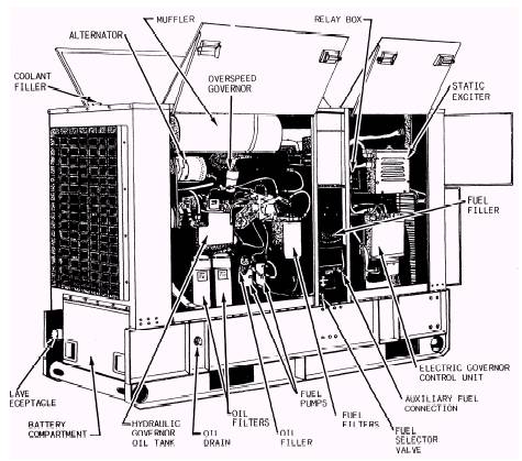 Figure 5-2.\200.kW portable generator. maximum demand at the same time. Second, some load devices are usually slightly larger than the minimum size needed and normally draw less than their rated load. Since the maximum demand is one of the factors determining the size of conductors, it is important that the demand factor be established as closely as possible. The demand factor varies considerably for different types of loads and services. Demand factors for military structures are given in table 5-2. Example: A machine shop has a total connected load of 50.3 kilowatts. The demand factor for this type of structure is taken at 0.70. The maximum demand is 50.3 0.70 = 35.21 kilowatts. Table 5-2.\Demand Factor