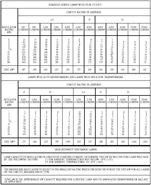 Table 1-1.\Approximate Lamp Capacity for Streetlighting Regulators