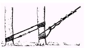 Figure 6-1.\Use of trees as natural holdfasts. the single picket is strong enough to stand a pull of about 700 pounds (317.5 kilograms).